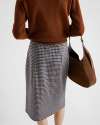 Classic lines and casual details define the design of this wool midi-skirt with a check motif. - Product code: P133KG_15R8_F0192_S_OOO - Pencil silhouette - Front snap closure - Patch pockets with snaps - Imported - The model is 179 cm tall and wears a size 38 Height: 68cm MATERIALS Wool
