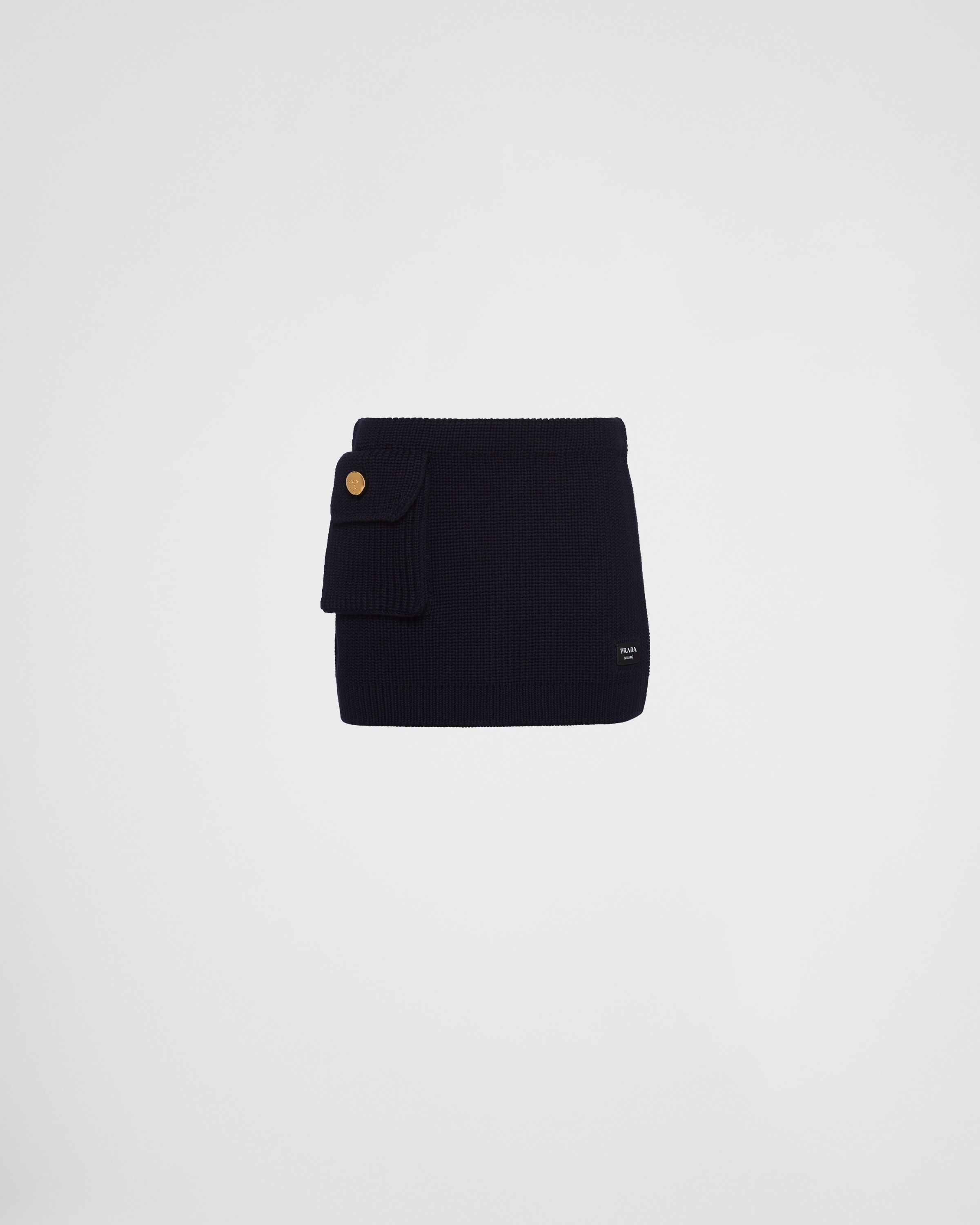 Sophisticated details animate the sophisticated silhouette of this wool miniskirt defined by its ribbed knit texture. The soft design with clean lines and slim fit is accented with a large patch pocket brightened by a retro-style gold button. The garment with modern allure is completed by the leather logo patch. - Product code: 21453_1VI6_F0008_S_232 - Ribbed knit - Miniskirt fit - Leather logo patch - Patch pocket - Imported Height: 30cm MATERIALS Wool