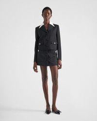 Sleek, geometric lines define the refined silhouette of this wool satin miniskirt that combines sartorial sophistication and contemporary charm. The slightly flared design is defined by the elegant front button closure and large patch pockets illuminated by jewel buttons. - 商品品番: P138XG_477_F0002_S_OOO - Flared fit - Lined garment - Front button closure - Patch pockets - Jewel button detail on the pockets - インポート - The model is 180 cm tall and wears a size 38 高さ: 36cm MATERIALS Wool