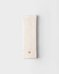 This refined, warm wool scarf is made with a soft, dense knit. The enameled metal triangle logo completes the accessory with a distinctive note. - Product code: 1FS137_2DZL_F0K74 - Enameled metal triangle logo - Fisherman's rib knit - 100% virgin wool - Imported Height: 160cm Width: 18cm MATERIALS Main material: Recycled polyester