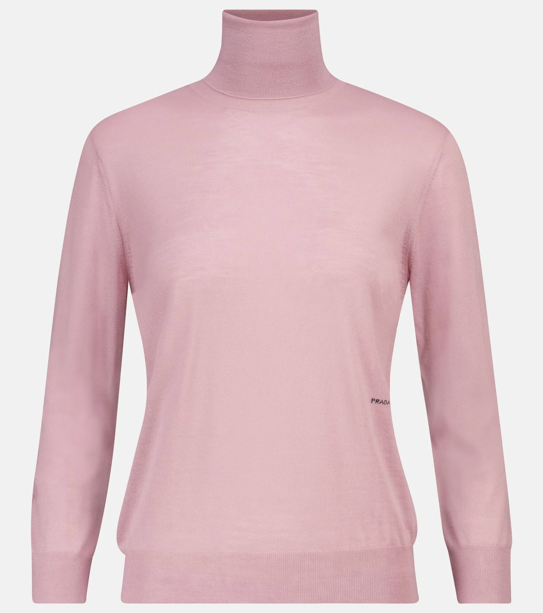 Minimalist in appearance but detailed in execution, this beige turtleneck sweater from Prada is a timeless choice. Made from signature brushed worsted wool, the lightweight slim-fit design is finished with an understated intarsia logo at the waist. Tuck yours into high-rise pants for an elongated silhouette. Product Details - Made in Italy - Material: 100% virgin wool - Care instructions: dry clean - Designer color name: Cipria - Item number: P00528304 Size & Fit - True to size - Designed for a loose fit - Slightly cropped - The model seen in the picture is 178cm-5'10" and wearing a size IT 40
