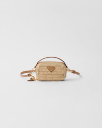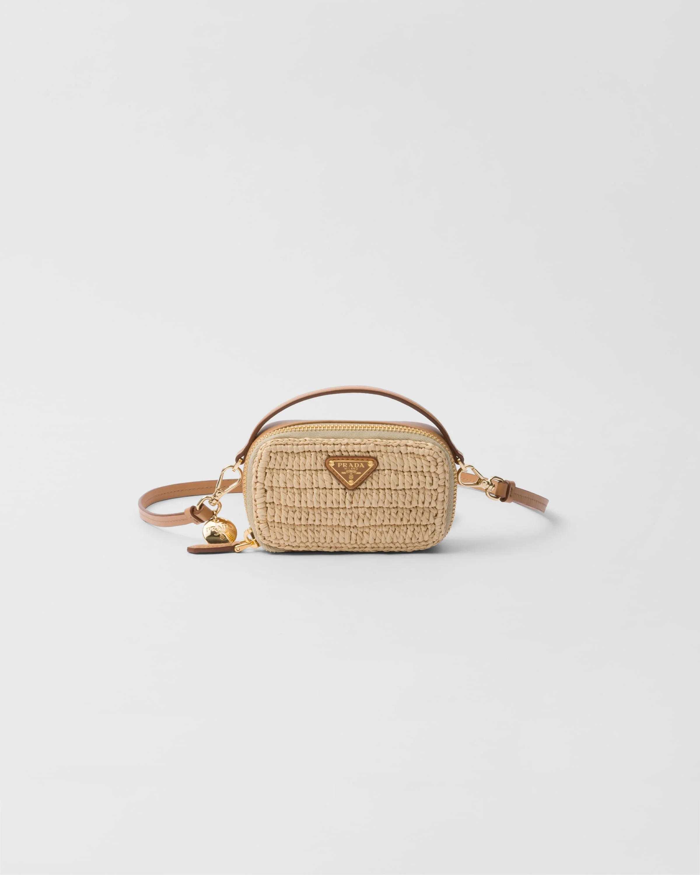 This modern and versatile crochet mini-pouch features sleek, harmonious lines. The accessory, with leather wristlet and detachable shoulder strap, is decorated with the iconic enameled metal triangle logo. - Product code: 1NR025_2CYC_F0018 - Zipper closure - Enameled metal triangle logo - Removable leather shoulder strap - Logo-print nylon lining - Imported Height: 6.5cm Width: 11cm Length: 2.5cm MATERIALS Main material: Steel