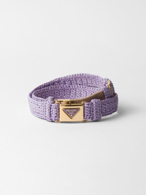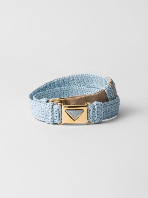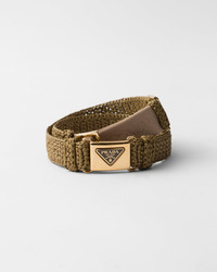This crochet belt with refined details features a simple design with a light, modern touch. The accessory with shiny gold-tone metal hardware is completed by a plaque buckle embellished with the triangle logo. - Produktcode: 1CM265_2C2T_F0393 - Raffia-effect yarn - Buckle with enameled metal triangle logo - Eingefuhrt Hohe: 2.5cm MATERIALS See material in product details