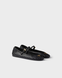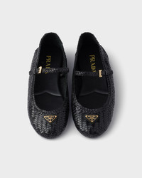 This design embracing simplicity of form is emphasized by a meticulously crafted construction in a constant dialog between modernity and tradition. These ballerina flat made of woven leather embody sleek, timeless elegance. - Product code: 1F368O_034_F0002_F_005 - Upper with strap and logo-engraved metal buckle - Enameled metal triangle logo - Monoblock rubber sole, 5 mm, with hot-stamped logo - Imported MATERIALS Main material: Goatskin