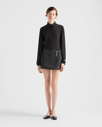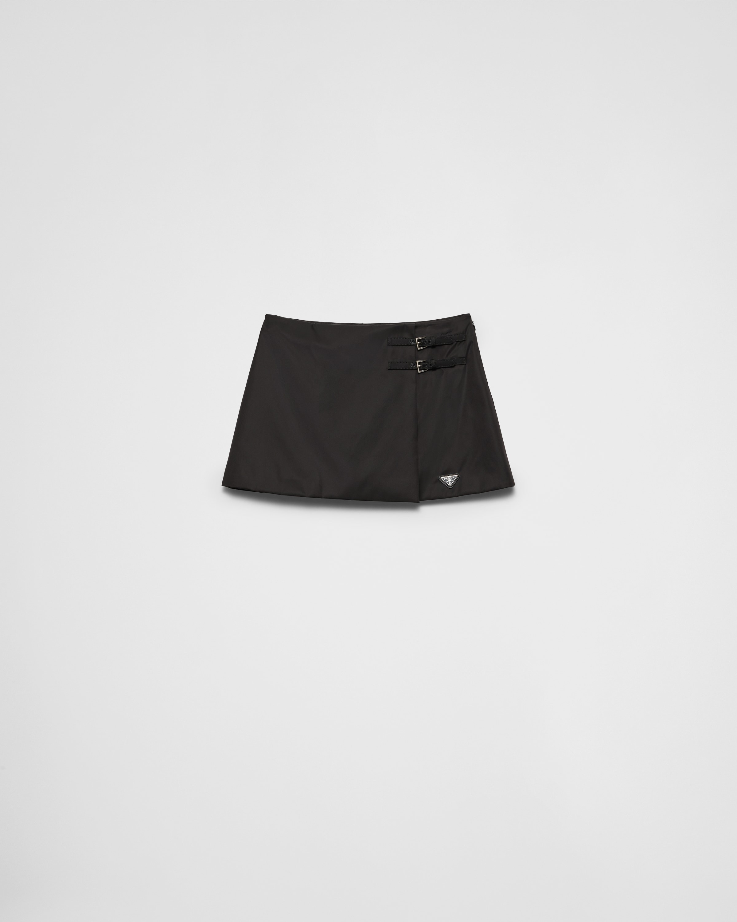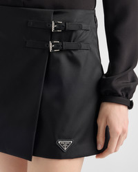An elegant silhouette meets the contemporary functionality of Re-Nylon in this wraparound skirt with minimalist allure, completed with refined fabric and leather straps. For sustainable care to preserve the product's characteristics and reduce microfiber shedding, we recommend not washing the item too often. Let the product air out after every use and have it dry cleaned at a specialized ecological dry cleaners. - 商品品番: 21H986_1WQ8_F0002_S_OOO - Lined - Front slit - Zipper and hook closure - Enameled metal triangle logo - Low-rise waist - Fabric and leather straps on the front - インポート 高さ: 40cm MATERIALS Nylon