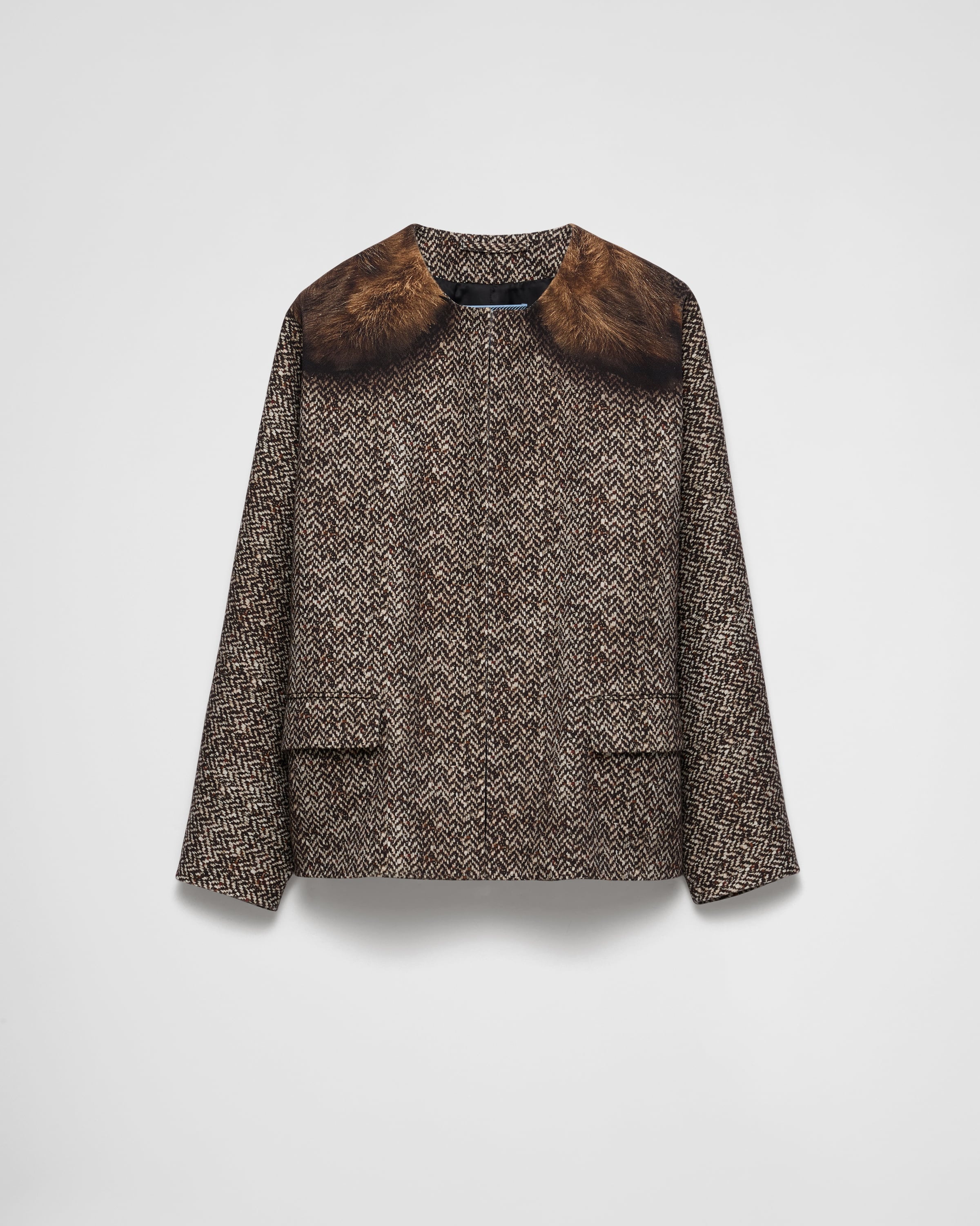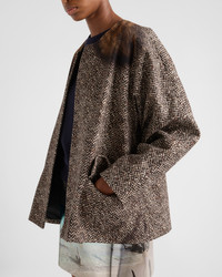 This caban jacket with details that blur the boundaries between illusion and reality is a contemporary interpretation of timeless stylistic codes. The garment with round neckline is animated by a trompe-l'oeil print that creates the appereance of a combination of refined textures on the drill silhouette. - Product code: P636SG_167R_F0192_S_OOO - Loose fit - Lined - Round neckline - Concealed front button closure - Straight sleeves - Flapped pockets - Imported - The model is 177 cm tall and wears a size 38 Height: 65cm MATERIALS Main material: 100% cotton