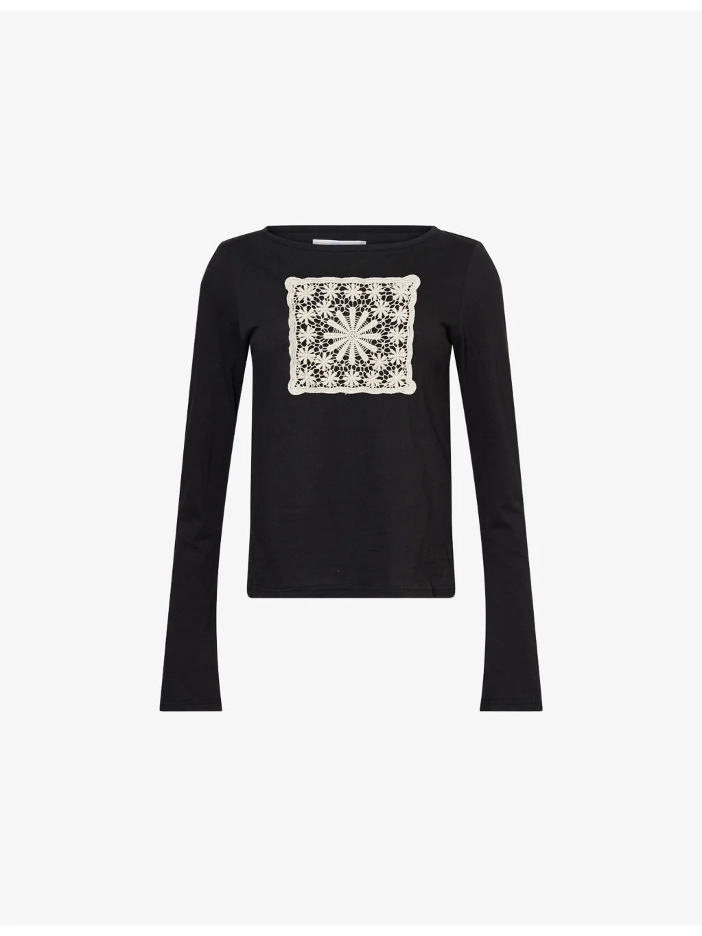Doilie Embroidered-Patch Long-Sleeve Cotton-Jersey Top