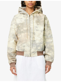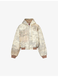PRODUCT DETAILS - Praying cotton bomber jacket - 100% cotton - Concealed zip fastening at front - Relaxed fit, drawstring hood, dropped shoulders, long sleeves, two side slip pockets, contrasting ribbed cuffs and hem, all-over star graphic print, padded interior - Machine wash at 30°C - True to size - Size small: length 23in / 58.5cm - Model is 5ft 10in/1.78m and wears a size small - Heavyweight, non-stretch Ref: R04468815