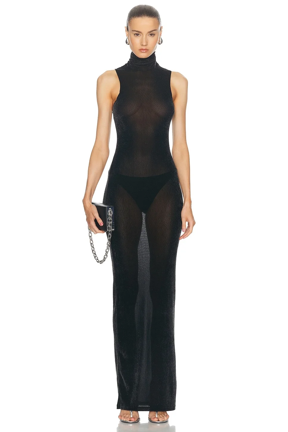 Details - 100% polyamide - Made in Portugal - Dry clean only - Unlined - Pull-on styling - Turtleneck styling - Jersey fabric with metallic finish - Garment is intentionally sheer, undergarments will show through. - Please note undergarment not included - Our Style No. PVEF-WD22 - Manufacturer Style No. 003143_144_OB