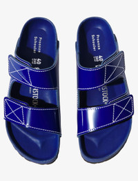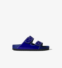 Made in collaboration with Birkenstock, the classic Arizona two-strap sandals are reimagined in blue specchio leather with contrast white topstitching. Designed with hook-and-loop fastened straps and a molded cork footbed covered in nappa leather. Slip-on style. Insole and Upper: 100% leather Footbed: leather covered cork Outsole: EVA Sizing: Please note that Birkenstock products are offered in European sizing which differs from Proenza Schouler Italian shoe sizing. The size you select above will match what is marked on the shoes. You can determine your Birkenstock size by adding 31 to your U.S. women’s size and 33 to your U.S. men’s size. Sizes 35 - 40 are Birkenstock Women's sizing. Please reference Birkenstock size guide for detailed sizing information. SKU: 1022638175