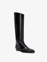 The Bronco Boots in Spazzolato Leather are crafted in soft leather and designed to pull on. Featuring a knee-length shape, they're complete with a squared-edge point toe and block heel. Details - Black - Spazzolato leather - Block heel - Squared-edge point toe - Upper: 100% calfskin; Sole: 100% rubber - SKU: PS41031A20070999 Size & Fit - True to size Care - Upper: 100% calfskin; Sole: 100% rubber - Please refer to care instructions provided with your order.