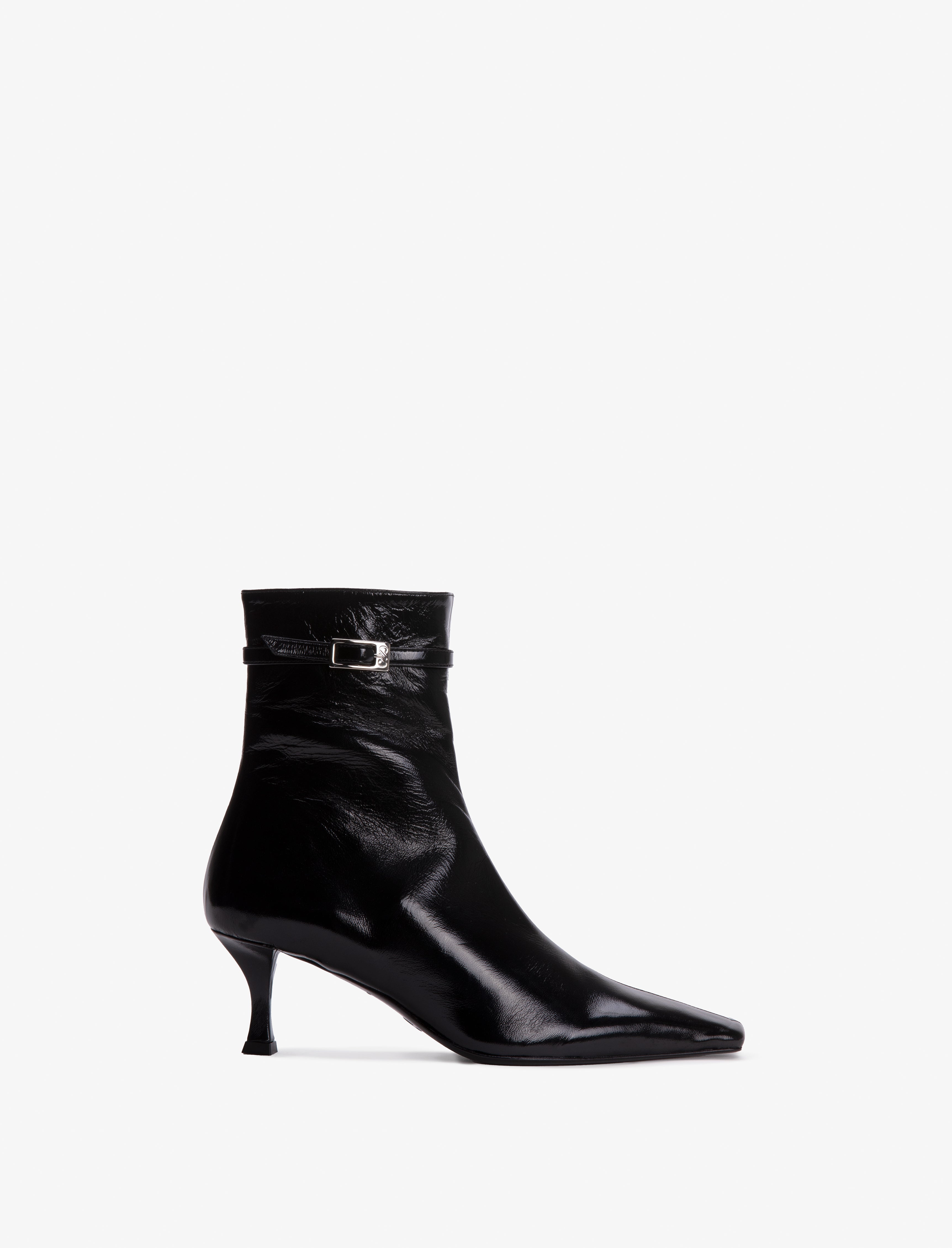 The Trap Ankle Boots are crafted in shiny nappa leather to a sleek ankle boot with a side zipper closure. Finished with a thin strap detail and monogram buckle. Details - Black - High shine leather - 60mm heel - Ankle rise - Thin strap detail - Monogram buckle - Side zipper - Upper: 100% lambskin; sole: 100% leather - SKU: PS43081A20010999 Size & Fit - True to size Care - Upper: 100% lambskin; sole: 100% leather - Please refer to care instructions provided with your order.