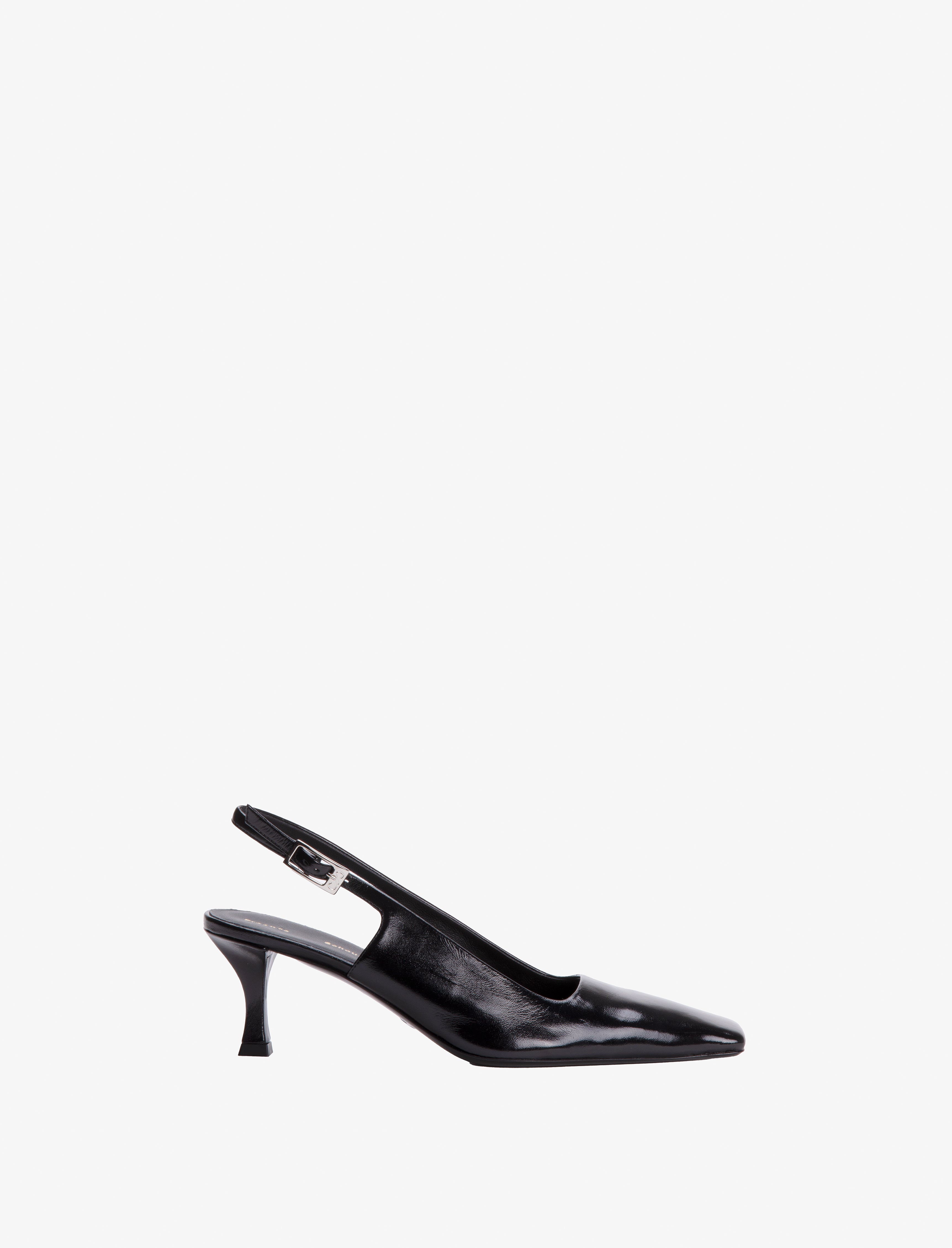 The Trap Slingback Pumps are crafted in shiny nappa leather with a point toe. Finished with a slingback strap with a monogram buckle closure. Details - Black - High shine leather - 60mm heel - Point toe - Monogram buckle - Silver-tone metal hardware - Upper: 100% lambskin; sole: 100% leather - SKU: PS43080A20010999 Size & Fit - True to size Care - Upper: 100% lambskin; sole: 100% leather - Please refer to care instructions provided with your order.