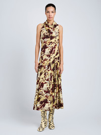 The Adelide Dress in Printed Silk Viscose is crafted to a fit-and-flare silhouette with a draped cowl neckline. Buttons fasten at the back of the neck, while curved seamlines complete the skirt. Details - Rust multi - Draped cowl neckline - Sleeveless - Back neck button fastenings - Concealed zipper fastening - Curved seamlines - Fit-and-flare silhouette - 56% viscose, 33% silk, 11% spandex - SKU: R2613019BYP297S971 Size & Fit - Model is 5'10'' with 32'' bust / 34'' hips. Wearing size 4 Care - 56% viscose, 33% silk, 11% spandex - Dry clean only
