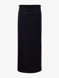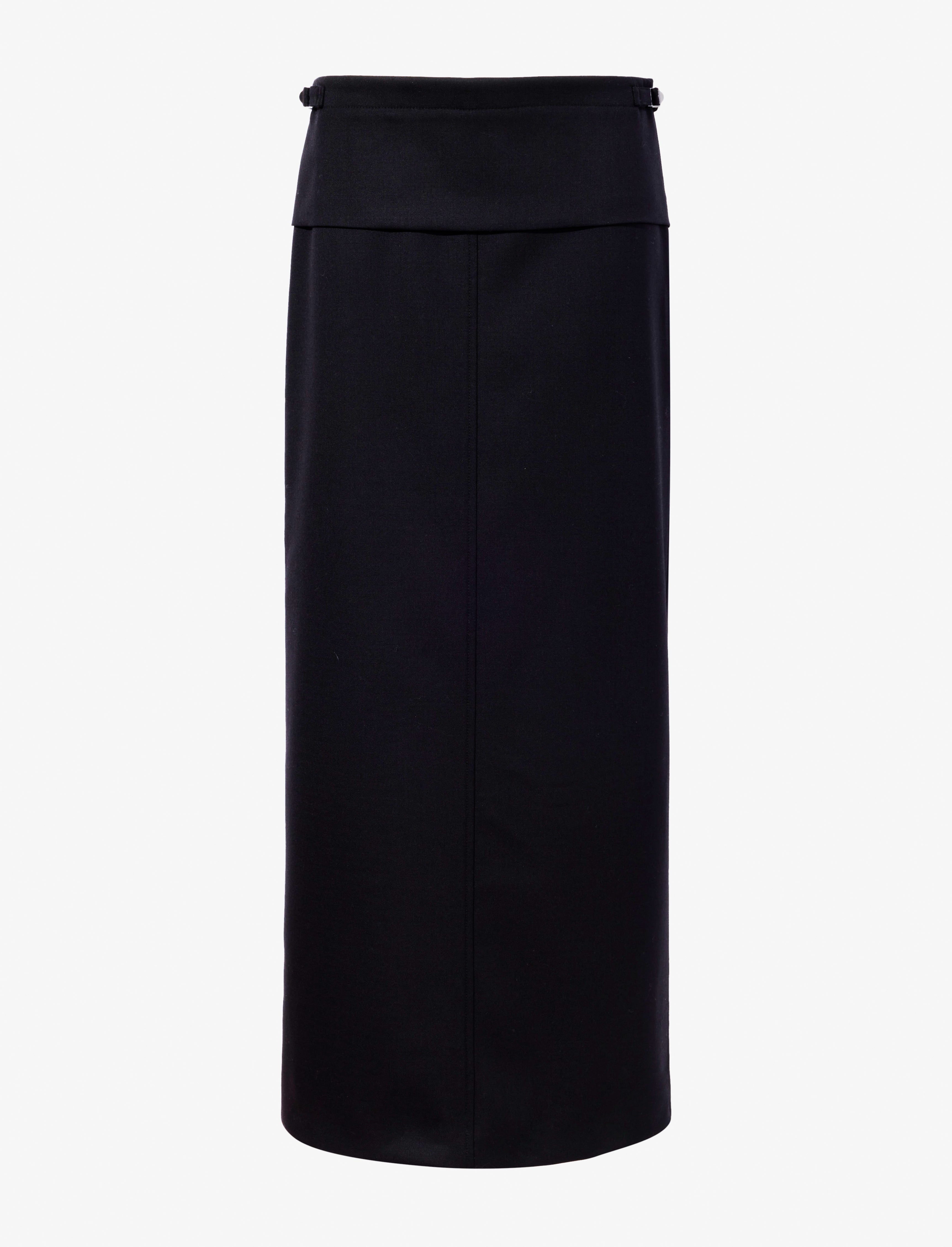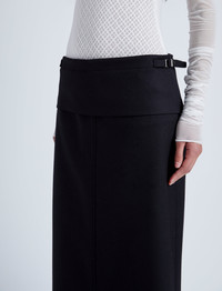 The Adriana Skirt in Wool Twill Suiting features a low-waisted, straight silhouette completed with paneled detailing and a back slit. Details • Black • Mid-to-low rise • Side waistband adjusters • Invisible zipper • Back slit • Slim straight fit • Maxi length • Fully lined • 98% virgin wool, 2% elastane • SKU: R2445001AW149001 Size & Fit • Model is 5'9'' with 30'' bust / 34.5'' hips. Wearing size 4 Care • 98% virgin wool, 2% elastane • Dry clean only