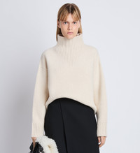 The Alma Sweater in Lofty Eco Cashmere is knitted with soft cashmere and shaped to a relaxed silhouette. Chunky ribbed contrasts detail the high neck, sleeve cuffs and hem. Details • Ecru • Knitted • Turtleneck • Drop shoulders • Long sleeves • Ribbed-knit trim • Straight hem • Relaxed fit • 58% cashmere, • 15% polyamide, 1% • spandex • • • SKU: R2417116KW150103 Size & Fit • Model is 5'10'' with 31.5'' bust / 35'' hips. Wearing size Small Care • 58% cashmere, • 15% polyamide, 1% • spandex • • • Eco Cashmere is an upcycled cashmere yarn made in Italy from discarded cashmere sweaters. Upcycled yarns are mixed with new cashmere yarns at a 50/50 ratio to create this product. This fabric is certified to be compliant with the Global Recycle Standard (GRS).