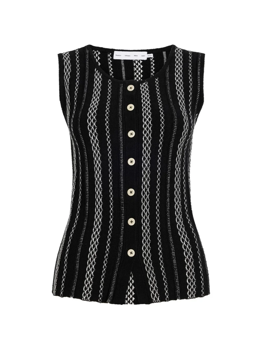 Alyna textured knit button vest Highlights - Black and white - Vertical stripes - Button closure - Textured knit - Sleeveless Imported Composition Viscose 75%, Silk 25% Washing instructions Dry Clean Only