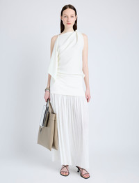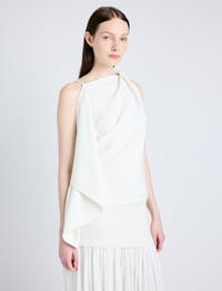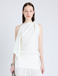 Details - Ivory - Asymmetric neckline - Sleeveless - Twisted strap detail - Side draping - Zipper closure - Slim fit - 70% triacetate, 30% polyester - SKU: R2514012BY116107 Size & Fit - Model is 5'11'' with 31'' bust / 36'' hips. Wearing size 4 Care - 70% triacetate, 30% polyester - Dry clean only