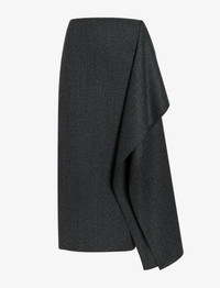 The Amery Skirt in Textured Suiting is cut to an A-line silhouette with a fluid side drape. Details - Charcoal melange - Mid to high rise - Draped panel - Side zipper closure - Straight hem - Slim fit - 54% polyester, 44% virgin wool, 2% elastane - SKU: R2535008AY207983 Size & Fit - Model is 5'11'' with 30'' bust / 35.5'' hips. Wearing size 4 Care - 54% polyester, 44% virgin wool, 2% elastane - Dry clean only
