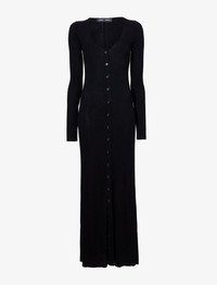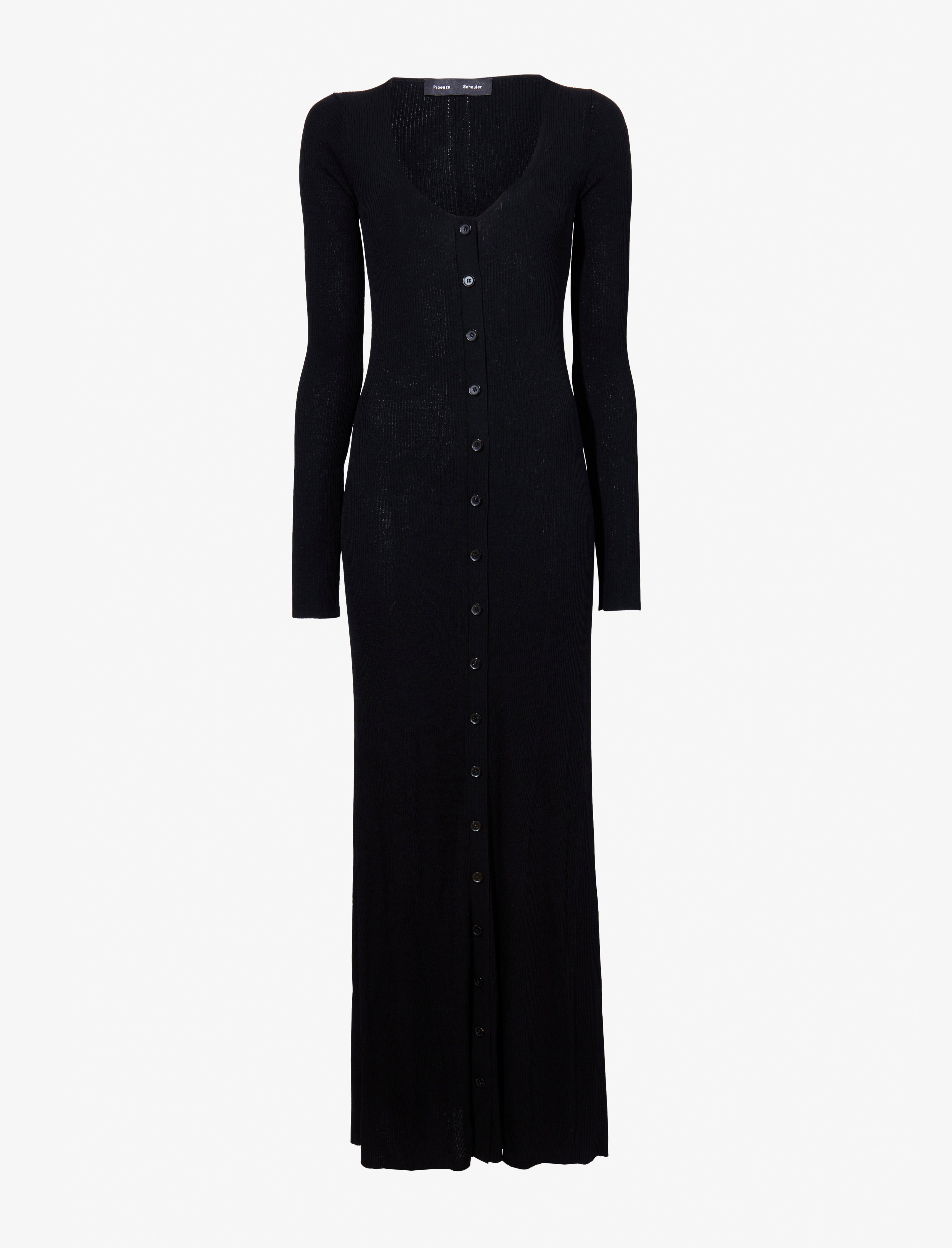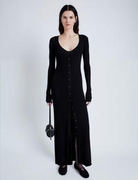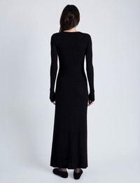 The Athena Dress in Silk Viscose is knit to a slim maxi-length silhouette with a wide scoop neckline. Finished with small button fastenings along the length of the dress. Details - Black - Lightweight - Scoop neck - Long sleeve - Button fastenings - Maxi-length hem - A-line silhouette - 79% viscose, 14% polyamide, 7% silk - SKU: R2447200KY294001 Size & Fit - Model is 5'10'' with 31.5'' bust / 34'' hips. Wearing size Small Care - 79% viscose, 14% polyamide, 7% silk - Dry clean only