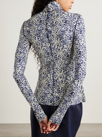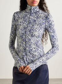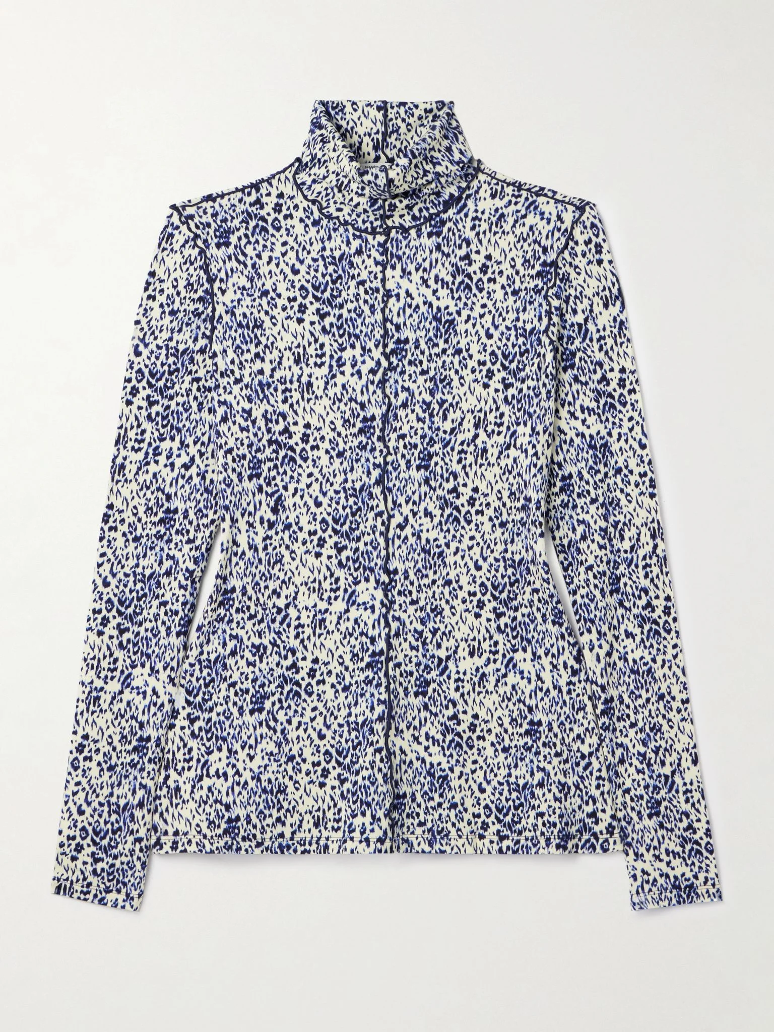 Audrey ruffled cheetah-print jersey turtleneck top Blue