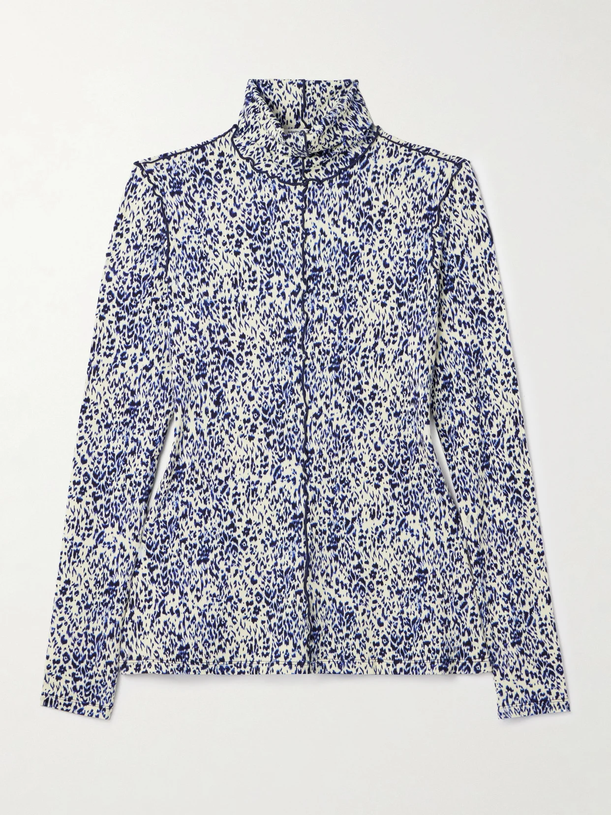 Audrey Ruffled Cheetah-print Jersey Turtleneck Top