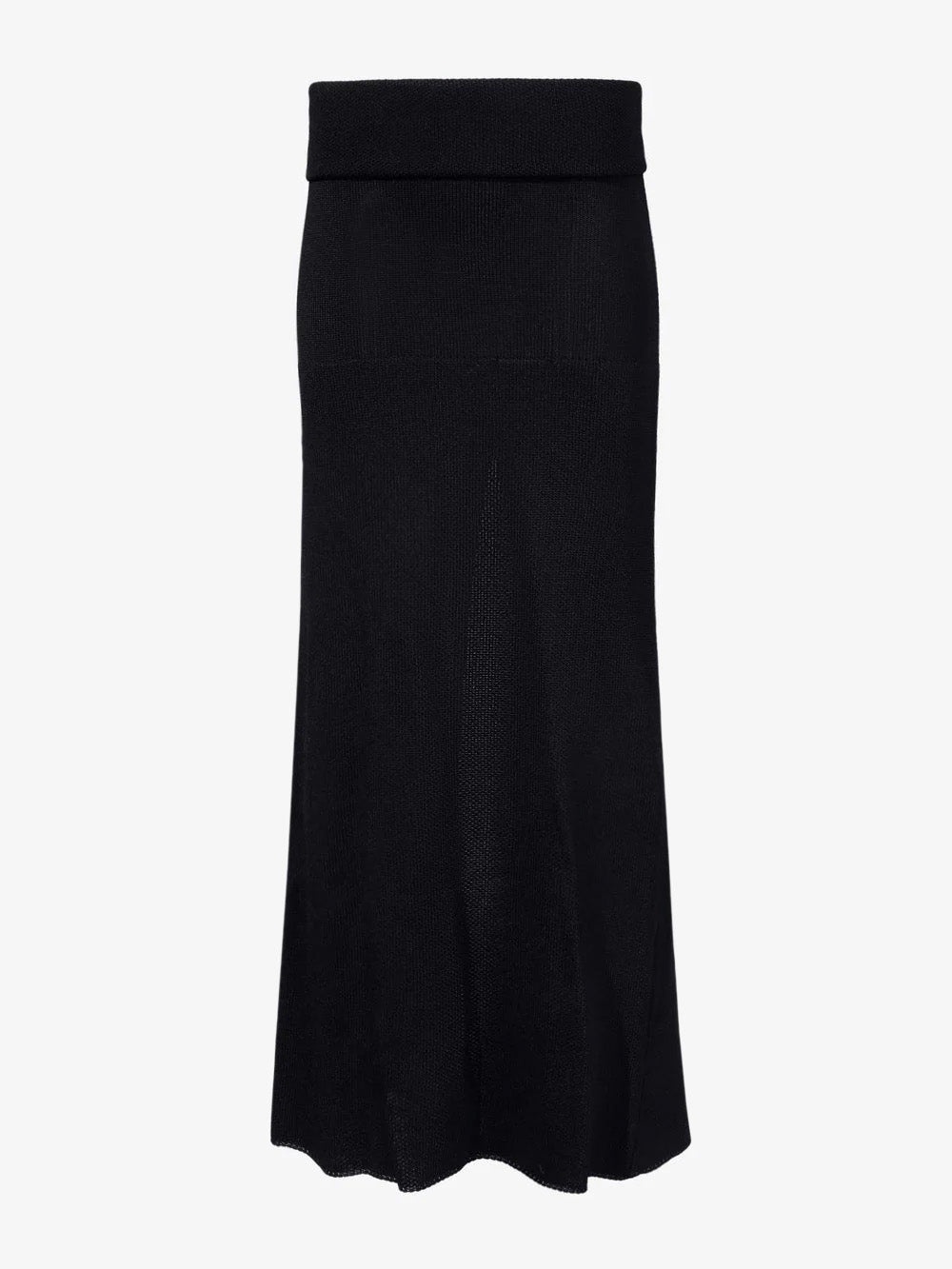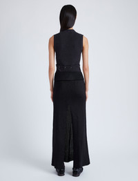 Fall 2024 Runway Collection | Look 4 The Avalon Skirt in Lacquered Viscose is crafted to ankle length silhouette with a glossy finish. Detailed with a fold-over waistband and center back high slit. Details - Black - Glossy finish - Fold-over waistband - Slip-on design - High slit back - Ankle length - Slim fit - 100% viscose - SKU: R2447197KY331001 Size & Fit - Model is 5'11'' with 28.5'' bust / 34.5'' hips. Wearing size Small Care - 100% viscose - Dry clean only