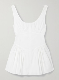 Bader gathered stretch-cotton poplin peplum top White