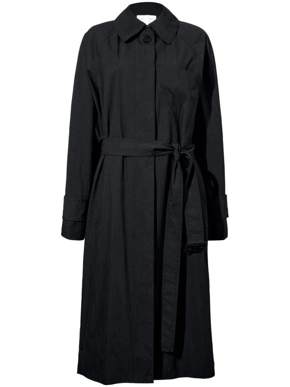 belted trench coat Highlights - Black - Gabardine weave - Classic collar - Long sleeves - Belted cuffs - Two front welt pockets - Front button fastening - Below-knee length - Storm flap - Belted waist - Central rear vent - Straight hem Imported Composition Nylon 100%, Cotton 100% SIZE & FIT FittingInformation Designed to be unstructured, offering a loose fit throughout The belt offers adjustability for fitted preferences Made from a midweight non-stretch fabric Washing instructions Read Manufacturer Guidelines