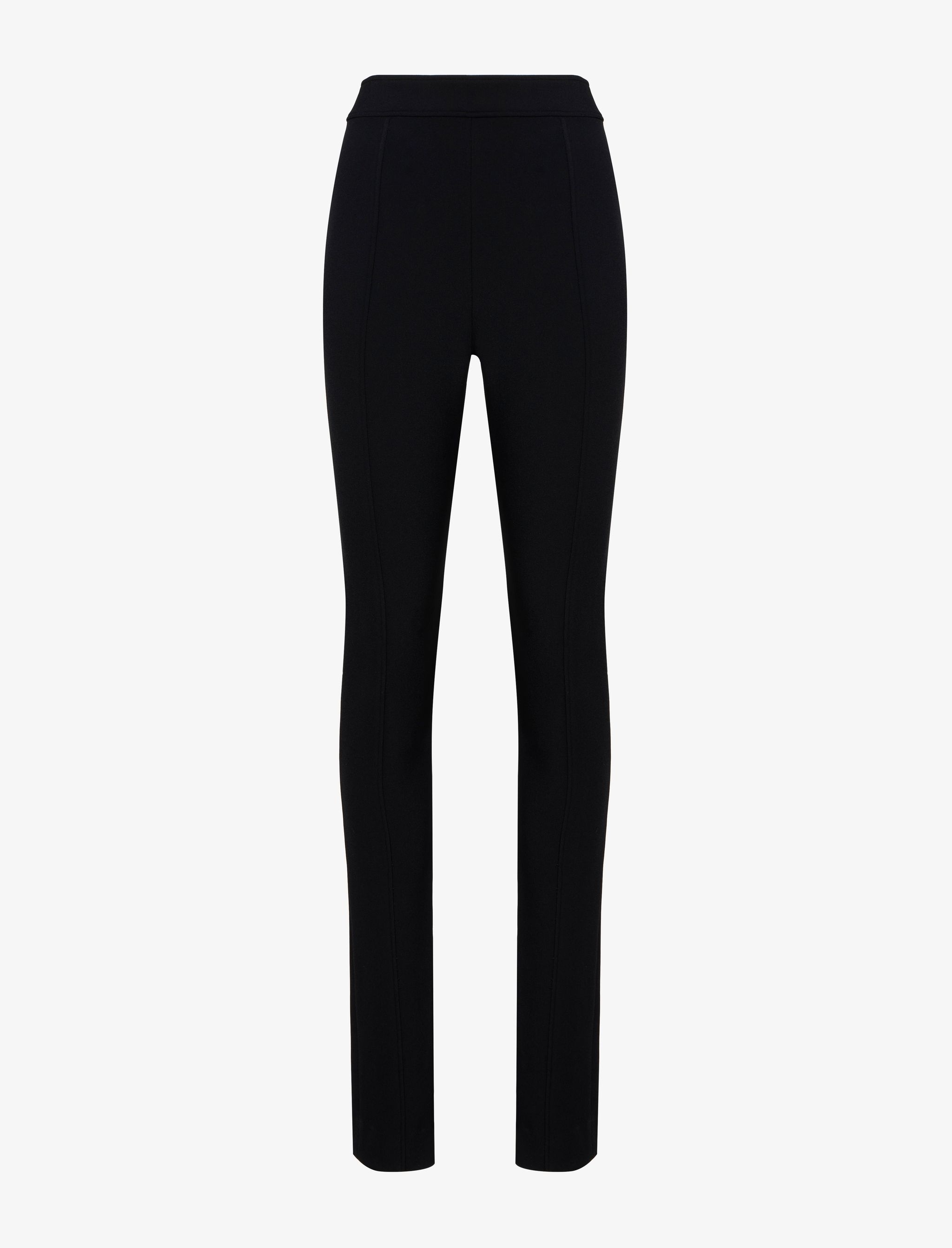 The Bi-Stretch Crepe Slim Pants are cut in black stretch crepe to a slim-fitting silhouette and feature concealed zips at the back of the cuffs. Elasticated high-rise waist. Visible center-front and back seams. 92% viscose, 8% elastane. SKU: R2236002AY137001