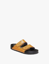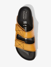 Made in collaboration with Birkenstock, the classic Arizona two-strap sandals are reimagined in ochre yellow leather with contrast black topstitching. Designed with hook-and-loop fastened straps and a molded cork footbed covered in nappa leather. Slip-on style. Insole and Upper: 100% leather Footbed: Nappa leather-covered cork Outsole: EVA Sizing: Please note that Birkenstock products are offered in European sizing which differs from Proenza Schouler Italian shoe sizing. The size you select above will match what is marked on the shoes. You can determine your Birkenstock size by adding 31 to your U.S. women’s size and 33 to your U.S. men’s size. Sizes 41 - 45 are Birkenstock Men's sizing. Please reference Birkenstock size guide for detailed sizing information. SKU: 1018084222 Available in three-strap Birkenstock x Proenza Schouler Milano Sandals