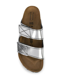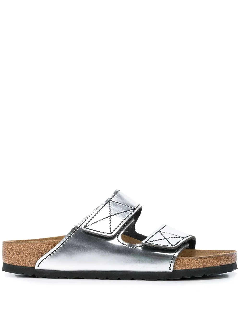 Made in collaboration with Birkenstock, the classic Arizona two-strap sandals are reimagined in metallic silver leather with contrast black topstitching. Designed with hook-and-loop fastened straps and a molded cork footbed. Slip-on style. Insole and Upper: 100% leather Footbed: Cork Outsole: EVA Sizing: Please note that Birkenstock products are offered in European sizing which differs from Proenza Schouler Italian shoe sizing. The size you select above will match what is marked on the shoes. You can determine your Birkenstock size by adding 31 to your U.S. women’s size and 33 to your U.S. men’s size. Sizes 41 - 45 are Birkenstock Men's sizing. Please reference Birkenstock size guide for detailed sizing information. SKU: 1018086052 Available in three-strap Birkenstock x Proenza Schouler Milano Sandals