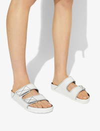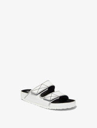 Made in collaboration with Birkenstock, the classic Arizona two-strap sandals are reimagined in smooth white specchio leather with contrast black topstitching. Designed with hook-and-loop fastened straps and a molded cork footbed covered in nappa leather. Slip-on style. Insole and Upper: 100% leather Footbed: leather covered cork Outsole: EVA Sizing: Please note that Birkenstock products are offered in European sizing which differs from Proenza Schouler Italian shoe sizing. The size you select above will match what is marked on the shoes. You can determine your Birkenstock size by adding 31 to your U.S. women’s size and 33 to your U.S. men’s size. Sizes 41 - 45 are Birkenstock Men's sizing. Please reference Birkenstock size guide for detailed sizing information. SKU: 1018085101 Available in three-strap Birkenstock x Proenza Schouler Milano Sandals