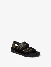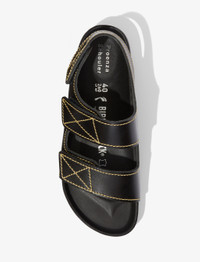 Made in collaboration with Birkenstock, the classic Milano three-strap sandals are reimagined in smooth black specchio leather with contrast yellow topstitching. Designed with hook-and-loop fastened straps and a molded cork footbed covered in nappa leather. Insole and Upper: 100% leather Footbed: Nappa leather-covered cork Outsole: EVA Sizing: Please note that Birkenstock products are offered in European sizing which differs from Proenza Schouler Italian shoe sizing. The size you select above will match what is marked on the shoes. You can determine your Birkenstock size by adding 31 to your U.S. women’s size and 33 to your U.S. men’s size. Sizes 41 - 45 are Birkenstock Men's sizing. Please reference Birkenstock size guide for detailed sizing information. SKU: 1018091999 Available in two-strap Birkenstock x Proenza Schouler Arizona Slides