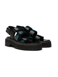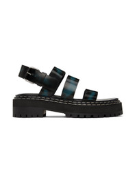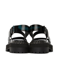 Polished leather sandals in black. · Spray paint effect throughout · Straps at vamp · Pin-buckle ankle strap · Logo printed at leather footbed · Topstitching at tiered welt · Foam rubber platform midsole · Lugged rubber sole · Platform: H1.25" · Heel: H1.75" Supplier color: Black Upper: leather. Sole: rubber. Made in Italy 241288F124003
