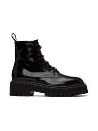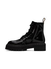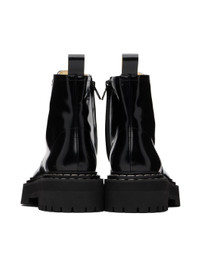 Ankle-high polished calfskin boots in black. · Lace-up closure · Pull-loop at heel collar · Concealed zip closure at inner side · Topstitching in white at welt · Grained leather lining · Foam rubber midsole · Treaded rubber sole · Heel: H2" Supplier color: Black Upper: calfskin. Sole: rubber. Made in Italy 242288F113001