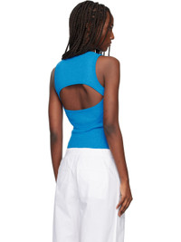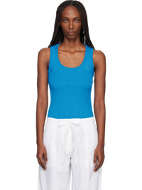 Rib-knit stretch tank top. · Scoop neck · Cutout at back Part of the Proenza Schouler White Label collection. Supplier color: Cyan Body: 55% rayon, 43% polyester, 2% spandex. Trim: 65% polyester, 28% rayon, 7% spandex. Made in Viet Nam 252288F111000