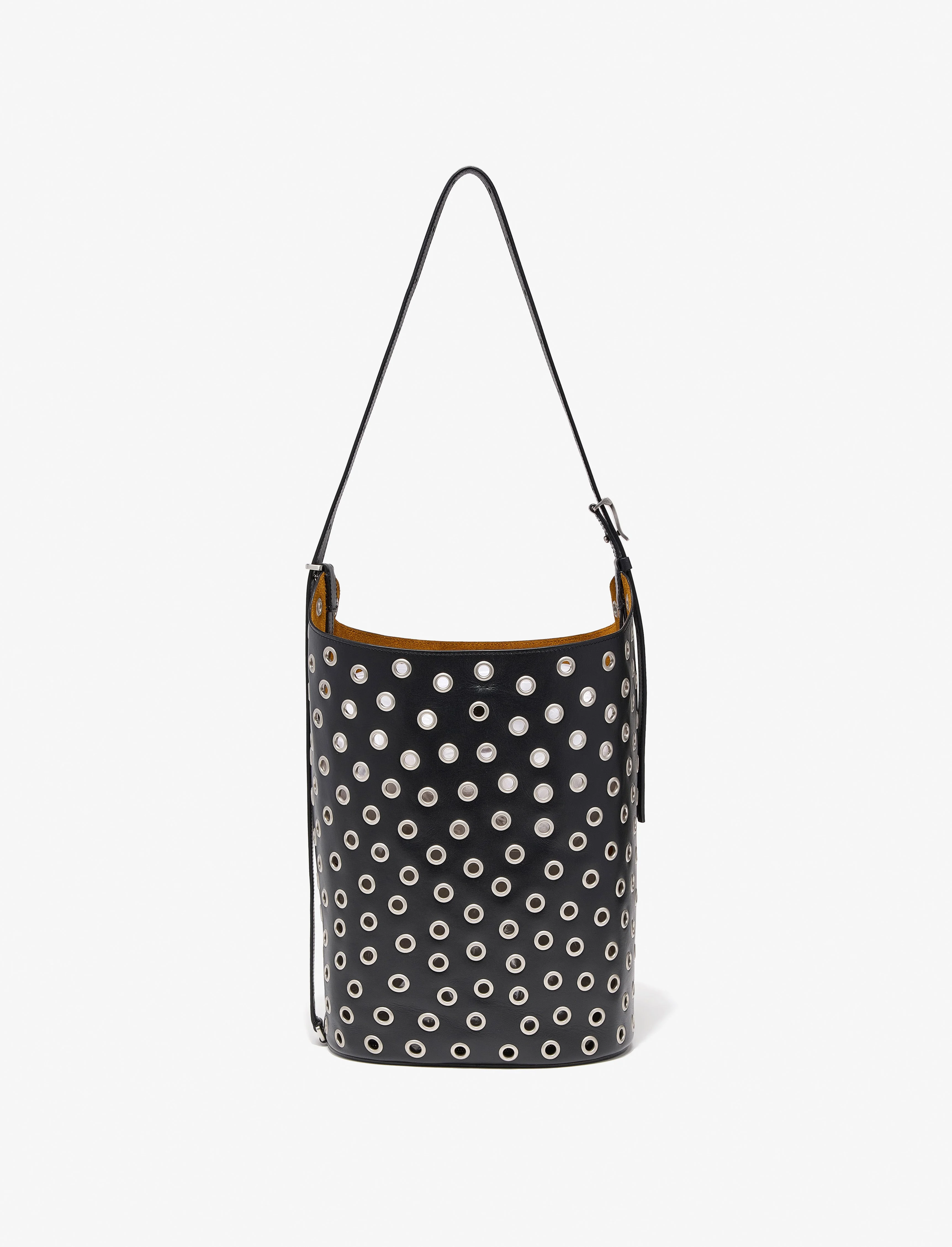 The Brant Bucket Bag is crafted in smooth calf and studded with silver-tone grommets throughout. Features a versatile silhouette that seamlessly transforms from a crossbody to a shoulder bag by unclipping the collar stud and sliding it through the strap. Detailed with a top edge that folds to secure the bag with a T-bar fastening, it is completed with an attached internal pouch. Details - Black - Studded nappa - Silver-tone grommets - Bucket bag - Adjustable shoulder strap - Collar studs - PS1 strap closure - Attached pouch - 100% calfskin - SKU: HB252092X503S001 Care - 100% calfskin - Our bags are hand crafted using genuine leather. Variations in tone, marks or grain are common and should not be considered imperfections. Like all natural materials, leather reacts to the atmosphere. Humidity, rain, and sunlight can damage leather. Should a slight white coating appear on the surface of the leather, it can easily be removed using a dry cloth. Should the leather get wet, please absorb the water immediately with a dry cloth. Overexposure to sunlight can stain or alter the color of the leather.