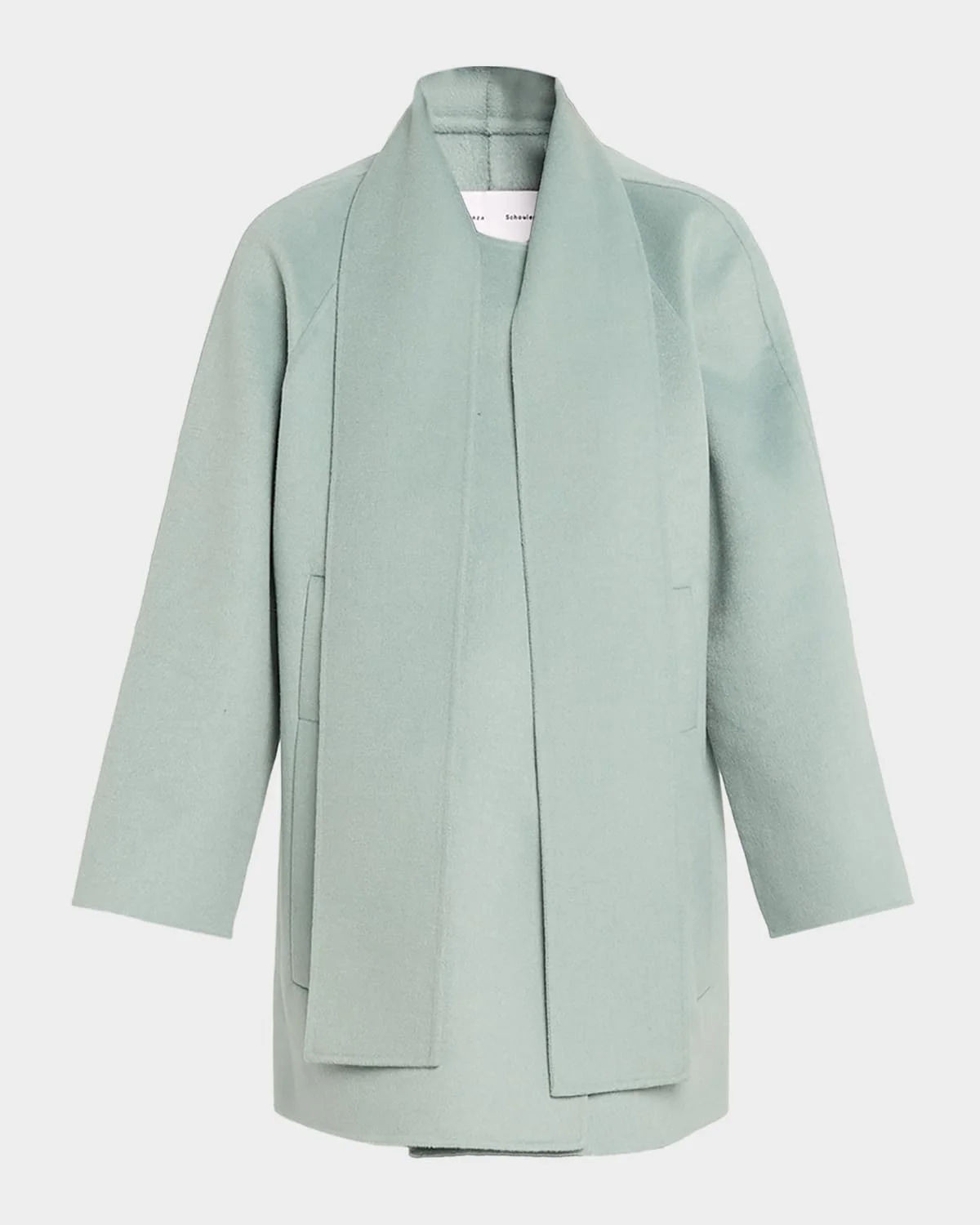 Crafted from a luxurious wool and cashmere blend, the "Brisa" coat by Proenza Schouler boasts an attached scarf neckline for a refined, cozy silhouette. Doublebreasted front Long raglan sleeves Side slip pockets Relaxed fit Midthigh length Buttonfront Wool/polyester/cashmere Dry clean Imported