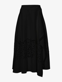 The Broderie Anglaise Skirt is cut to an A-line silhouette and features a wrap front. Falls to below the knee. Concealed front closure. 70% triacetate, 30% polyester. SKU: R2235005BYE116001