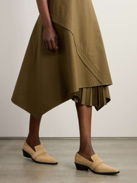 EDITORS'NOTES Proenza Schouler re-imagines its signature 'Bronco' boots as smart loafers that imbue the same Western feel. Made from beige suede, this point-toe pair has a padded strap across the vamp and rests on a 40mm Cuban heel. SIZE & FIT - Fits large to size, take a full size smaller than normal - Italian sizing DETAILS & CARE - Heel measures approximately 40 mm/ 1.5 inches - Beige suede (Calf) - Slip on Large to size. See Size & Fit notes.