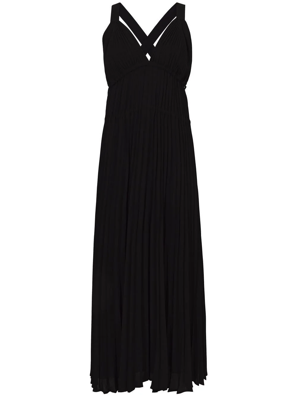 Broomstick pleated tank dress Highlights - Black - Plisse effect - Ruched bodice - V-neck - Sleeveless - Rear criss-cross straps - Self-tie fastening - Mid-length Made in Italy Composition Polyester 100% Washing instructions Dry Clean Only
