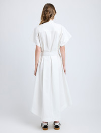 Details - White - Band collar - Wide short sleeves - Concealed button placket - Self-tie waist belt - Side slip pockets - Curved hem - Slim silhouette - 96% cotton, 4% elastane - SKU: R2513025SC037E100 Size & Fit - Model is 5'11'' with 31'' bust / 36'' hips. Wearing size 4 Care - 96% cotton, 4% elastane - Dry clean only