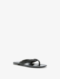 The Cable Thong Sandals feature a slip-on thong silhouette with a gathered top strap. Details - Black - Flat heel - Thong sandal - Gathered nappa leather detail - Upper: 100% calfskin; Sole: 100% rubber - SKU: SH25S046C006FR001 Size & Fit - True to size Care - Upper: 100% calfskin; Sole: 100% rubber - Please refer to care instructions provided with your order.