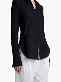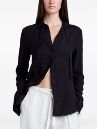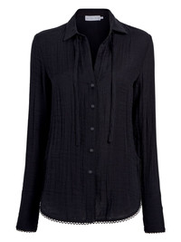 Cami shirt Highlights - Black - Front button fastening - Long sleeves - Curved hem - Tie-fastening straps Imported Composition Polyester 100%, Viscose 100%