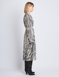 Carol Belted Dress in Stripe Pleated Chiffon