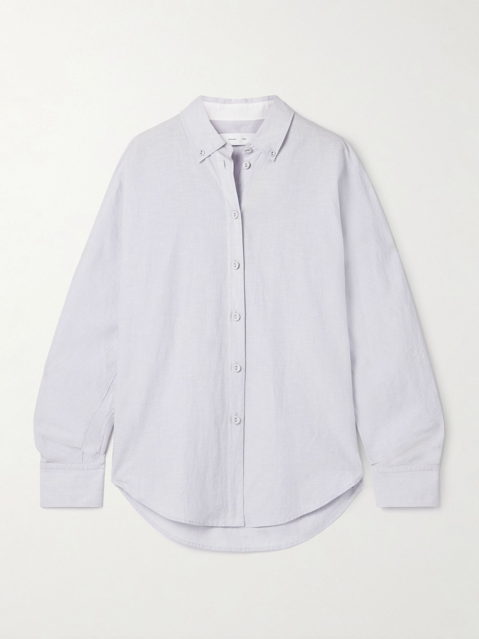 Caroline striped cotton and linen-blend Oxford shirt Blue