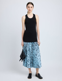 The Cecily Skirt in Printed Crinkle Chiffon is crafted to an A-line silhouette, featuring fine pleats and a hem that finishes just below the knee. Details - Sky blue multi - High waist - Concealed side zipper closure - Knife pleats - Mid-length hem - Fully lined - 71% acetate, 29% polyester - SKU: R2535000BYP200981 Size & Fit - Model is 5'11'' with 30'' bust / 35.5'' hips. Wearing size 4 Care - 71% acetate, 29% polyester - Dry clean only