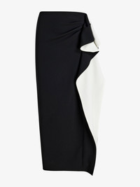 The Cella Skirt in Matte Double Crepe features a form-fitting silhouette with a cascading, two-tone ruffle at the side front. Details - Black, ivory - Cascading ruffle - Zipper fastening - Straight hem - Slim fit - 70% Triacetate 30% Polyester - SKU: R2625005BY116007 Size & Fit - Model is 5'11.5'' with 32.5'' bust / 35'' hips. Wearing size 4 Care - 70% triacetate 30% polyester - Dry clean only