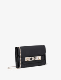 The iconic PS11 family is distinguished by signature inverted metal studs. Crafted in custom-developed Linosa textured leather, the Chain PS11 Clutch is the compact version of the PS11 Mini Classic. Features a front flap secured with a hidden magnetic fastening. Interior zip compartment and a durable canvas lining. Exterior zip compartment at the back. Calf leather. Made in Italy. L: 9” D: 1.5” H: 6” Strap: 23” The PS11 family consists of the original Mini Crossbody and Mini Classic, and the new Micro Belt Bag, Small Saddle, Medium Saddle, Convertible Box Bag, Mini Soft Classic, Soft Classic, and Chain Bag. SKU: H01020C137A0000